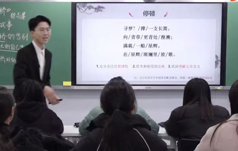 陈海城的科研,始于一次文化IP项目的参与——在大二那年,他主动加入外院的大学生创新创业项目,开始了科研项目的跨领域探索。这个项目聚焦“五育并举背景下中小学STEAM课程开发与实践”。从前期查文献、梳理资料,到跑实地做调研,再到最后整理内容、撰写报告,他熬过了学术路上的第一个通宵。这段经历让他懂得,文科生的发展不止一条路,和不同领域的人协作做事,能慢慢开阔自己的视野,看到更多可能性。这份从实干里悟出来的道理,也融入到了他对教学的理解中。他总说,教学比赛就像一杯浓缩咖啡,要在短时间里把亮点呈现出来,吸引学生注意力;而真实的课堂更像一杯清茶,节奏舒缓,慢慢引导、悄悄浸润,才能实现春风化雨的教学效果。平时,他会以学生喜闻乐见的形式传授知识点,以趣引路,以文育人。