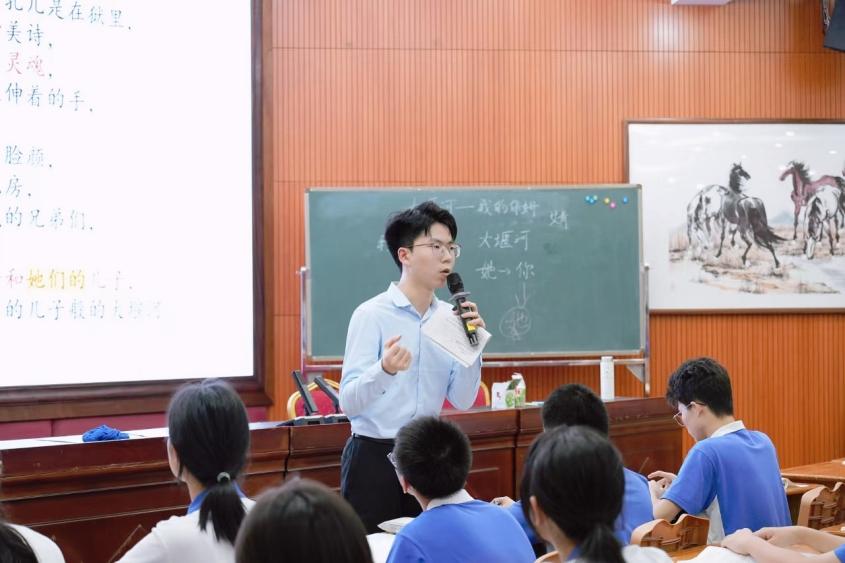 对陈海城而言,志愿活动从来不是简单的任务打卡,而是一点点挖掘教育本质意义的过程。截至毕业,他累计参与志愿服务超过536小时,其中青年云支教的经历,让他真切摸到了教育最本真的温度。支教时,他曾和一名边远山区的男孩进行过深度沟通。他不断耐心引导,慢慢帮男孩找回了学习的信心,点燃了男孩对知识的兴趣。看着男孩渐渐变得开朗的笑容,看着他跟着自己学会读诗、做手工,陈海城忽然懂了:文学不只是书本上印着的文字,更是能实实在在照亮每一个具体的人的光。这样的经历也让他对教师这个角色有了更深的认知:教育不只是把知识从教师手里传到学生手里,更是两个生命之间的真诚对话,是师生一起成长、共同进步的过程;它不只是在于自己活得精彩、实现个人价值,更在于帮助别人的时候,用自己的微光照亮他人的成长路,这份双向的温暖才更有意义。