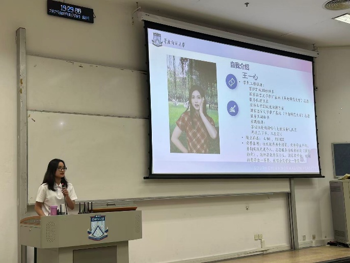 王一心师姐首先向大家做了自我介绍。师姐围绕“心之所向,行之所至”的主题开展分享,并从绩点提升、课题调研、竞赛参与、备考规划四个方面,为同学们指明了大三可以努力的方向。她强调,要重视专业课的学习,提高绩点,为未来求职升学道路打下坚实的基础。此外,师姐结合个人经历,为同学们提供了三个建议:别用逃避心态做选择,别把升学当就业的避风港,别把就业当来不及升学的妥协,鼓励同学们倾听内心声音,理性考量,选择真正适合自己的人生道路。