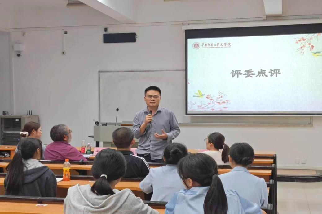 中学语文教学法教研室郑有才老师、文艺学和美学教研室张成华老师、王小明老师、中国古代文学教研室刘晖老师、现代汉语教研室徐涵韬老师、孟亚茹老师、古代汉语教研室蔡苑婷老师担任本次院赛评委。此前班赛共有30名选手晋级院赛,经过激烈角逐,本次院赛共选拔出22名选手晋级校赛。